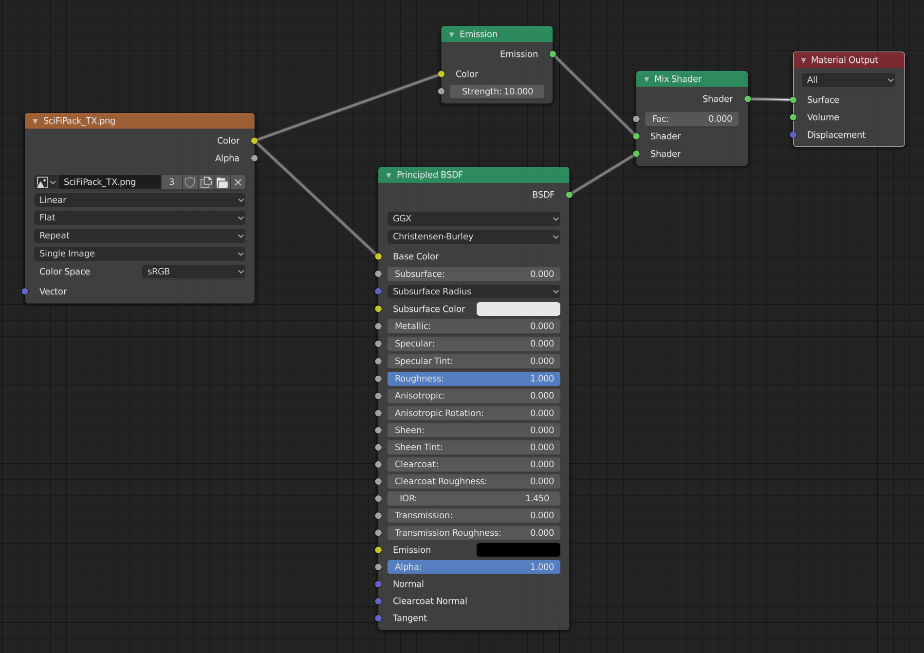 PBR (Physically Based Rendering) materials: This shader is extremely flexible, as it includes properties like diffuse, roughness, metalness and emission that allow you to configure how a material interacts with light.