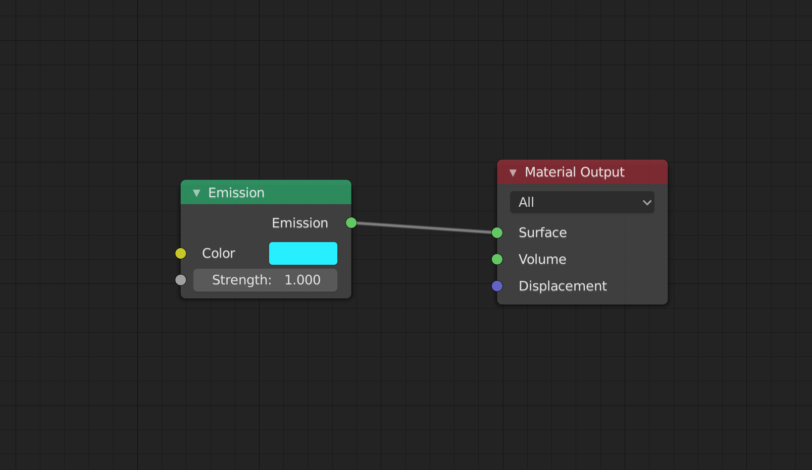 You can also make a material emissive. Emissive materials cast their own light. Note that when rendered, they don’t actually illuminate nearby objects in the scene, they just seem to have a blurred glow around them.