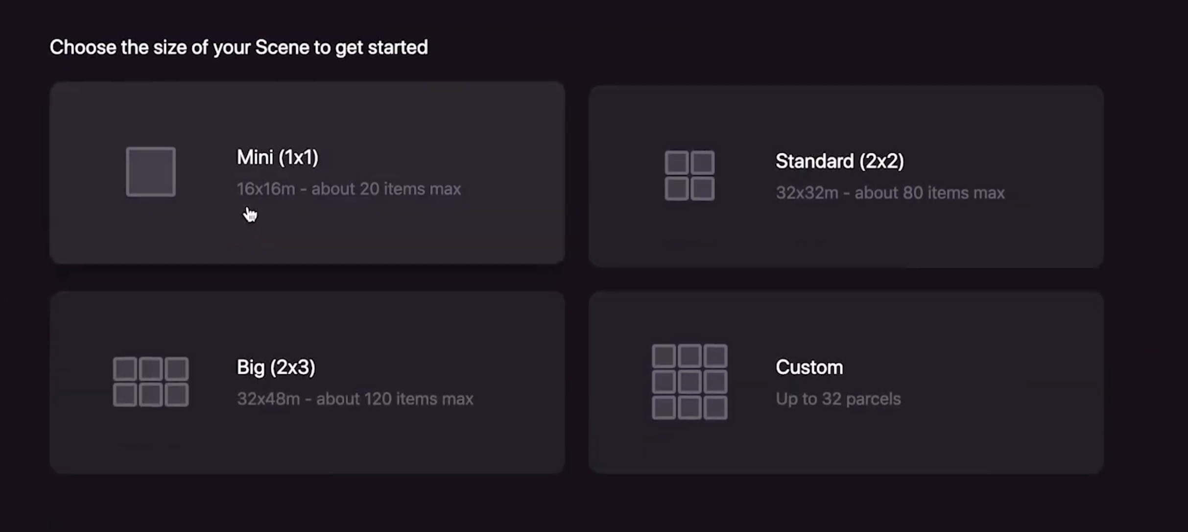 Scenes in Decentraland occupy one or several adjacent LAND parcels. Each LAND parcel measures 16x16 meters.