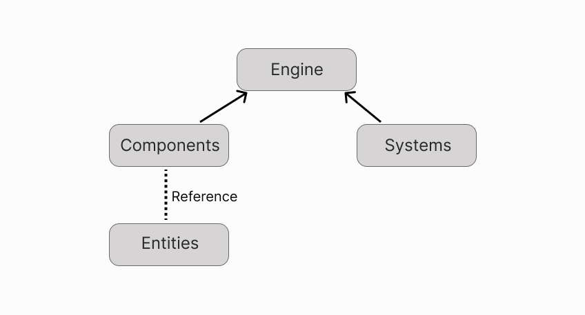 The engine is what sits in between entities, components and component groups on one hand and systems on the other. It calls system’s functions, updates groups when entities are added, etc.
