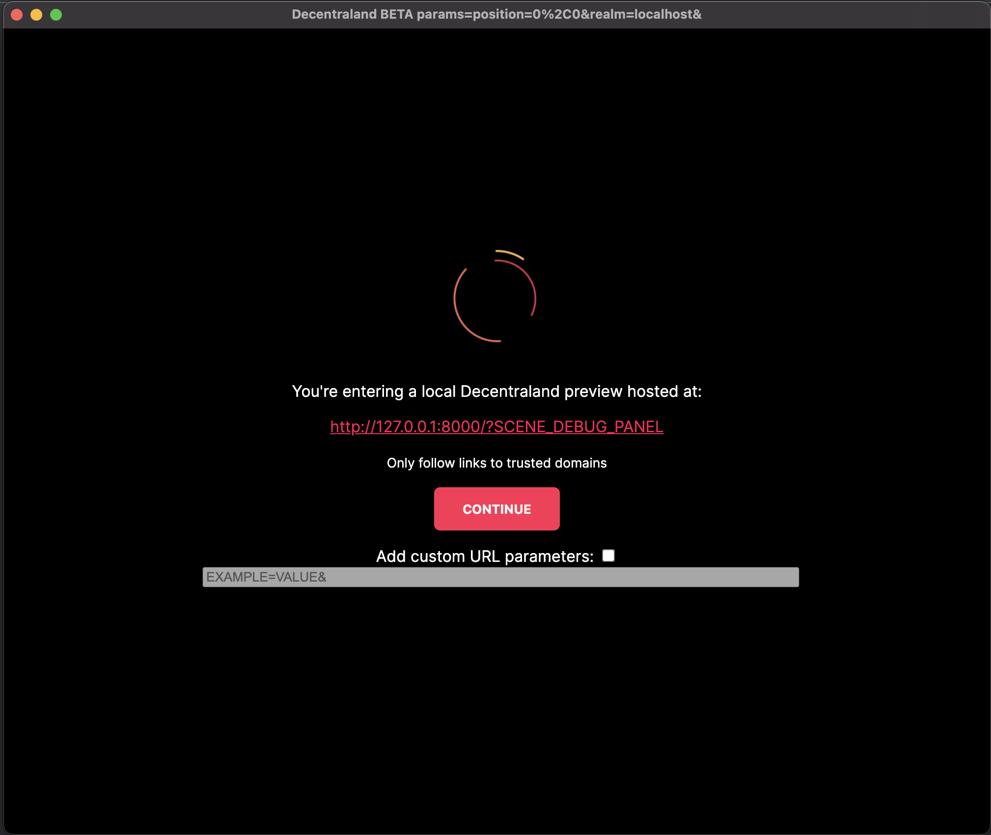 If you need to manually add anything to the URL, to change the default way the scene runs, tick the box Add custom URL parameters and write those in the dialog below.
